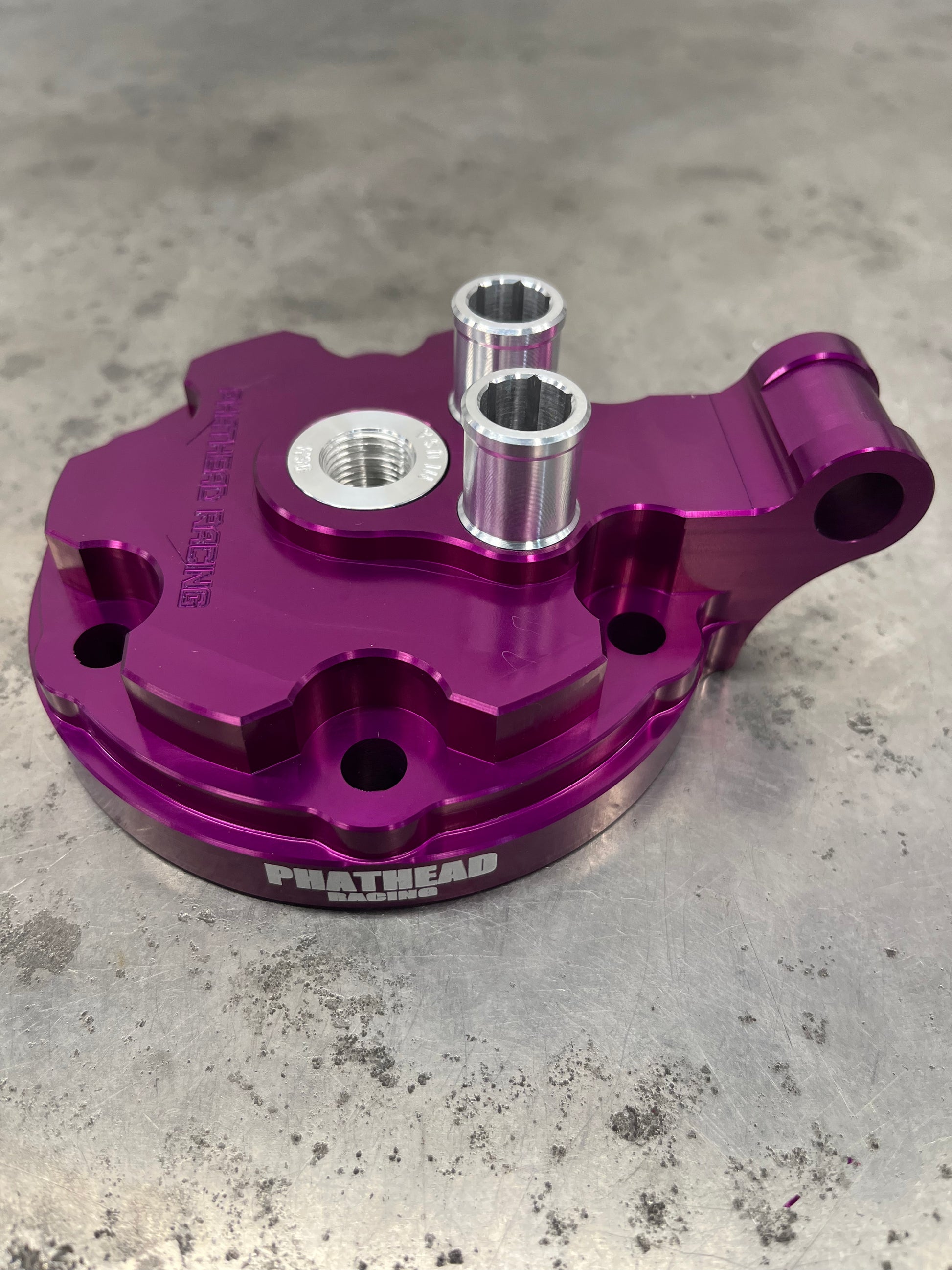 Phathead cylinder heads are made of 6061 T6 billet aluminum. The material is stronger and transfers heat better than cast aluminum. The two piece design allows an increase in coolant flow as well as surface area which improves cooling for better consistency and performance.