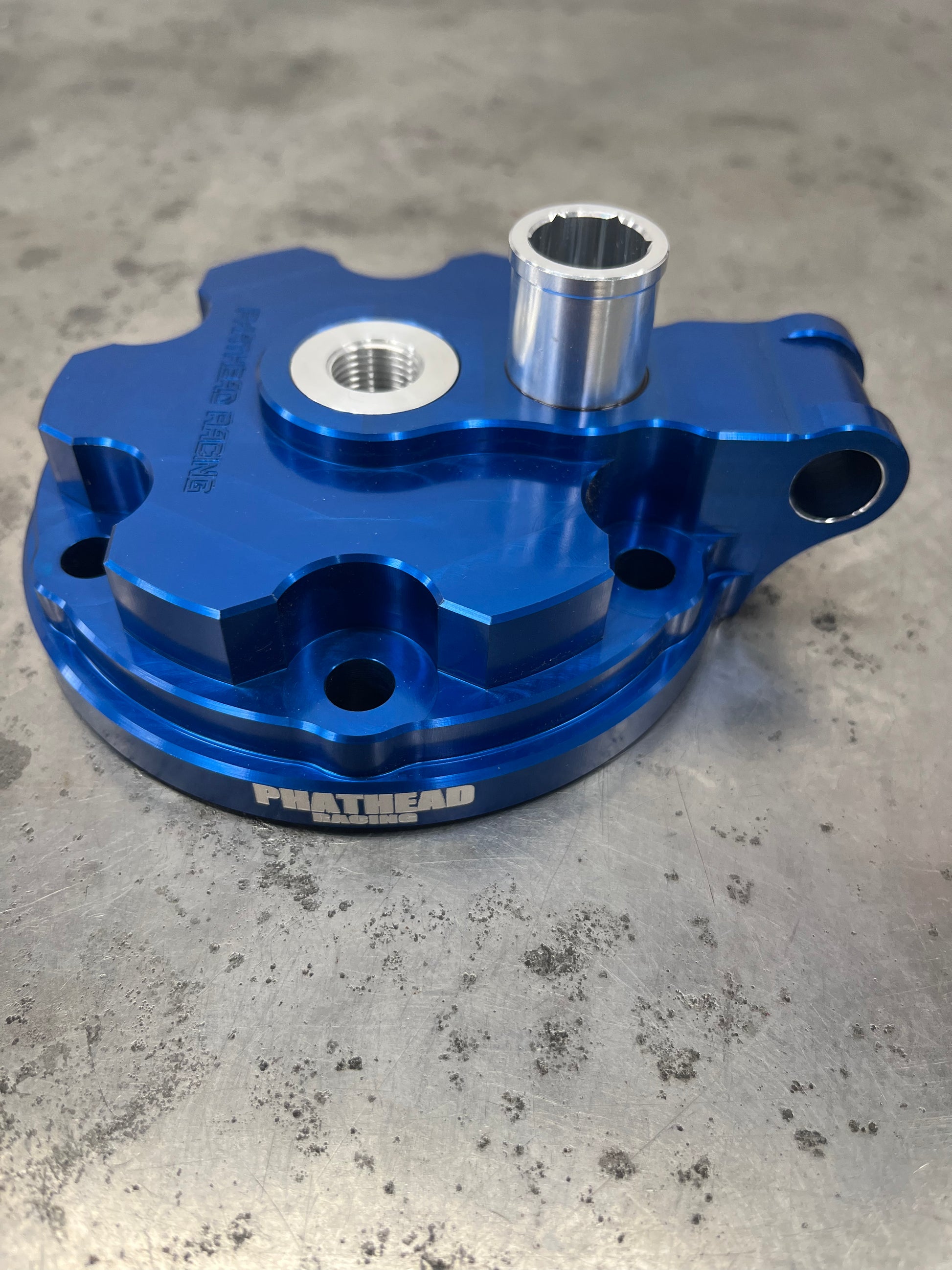 Phathead cylinder heads are made of 6061 T6 billet aluminum. The material is stronger and transfers heat better than cast aluminum. The two piece design allows an increase in coolant flow as well as surface area which improves cooling for better consistency and performance.