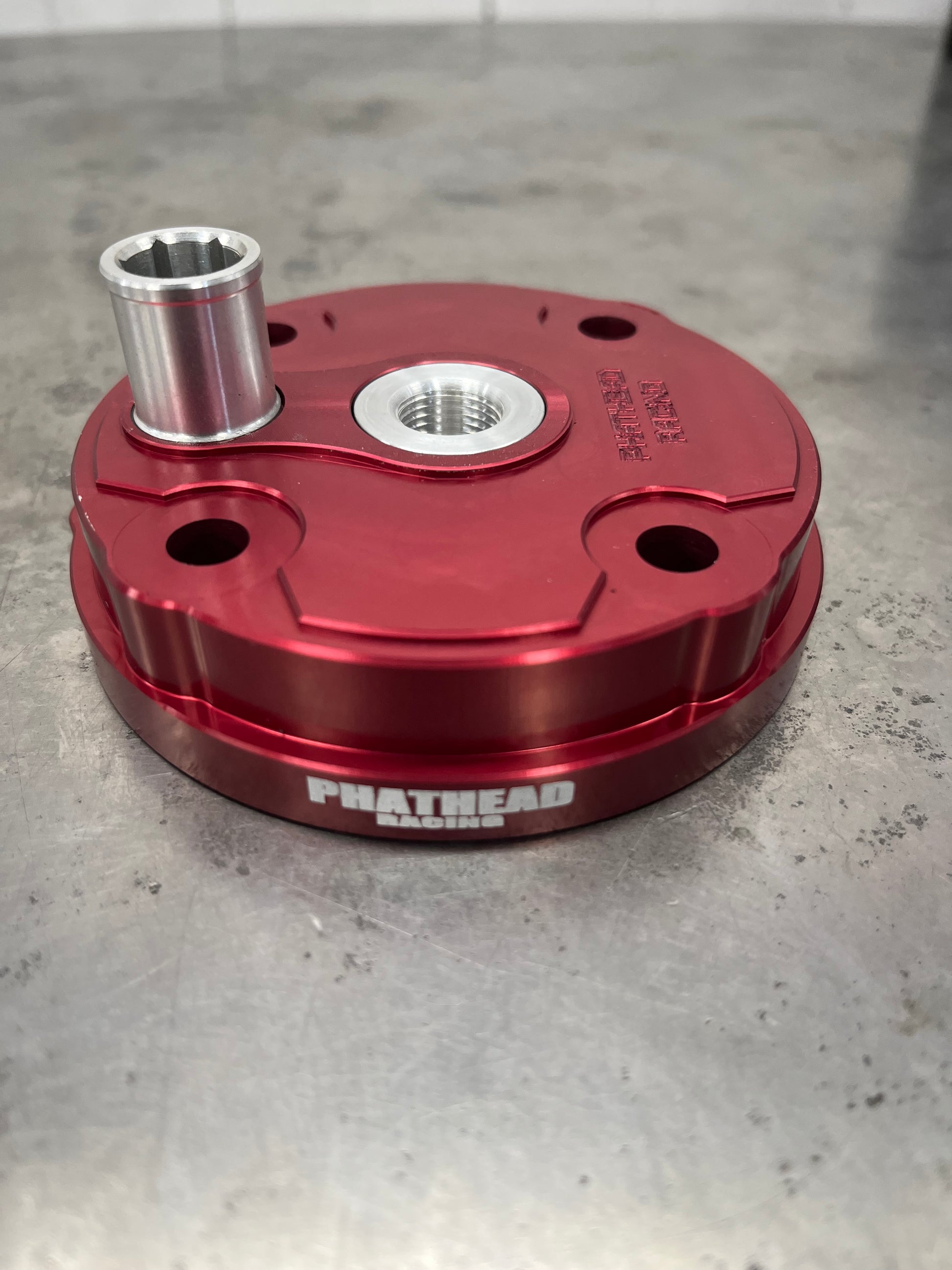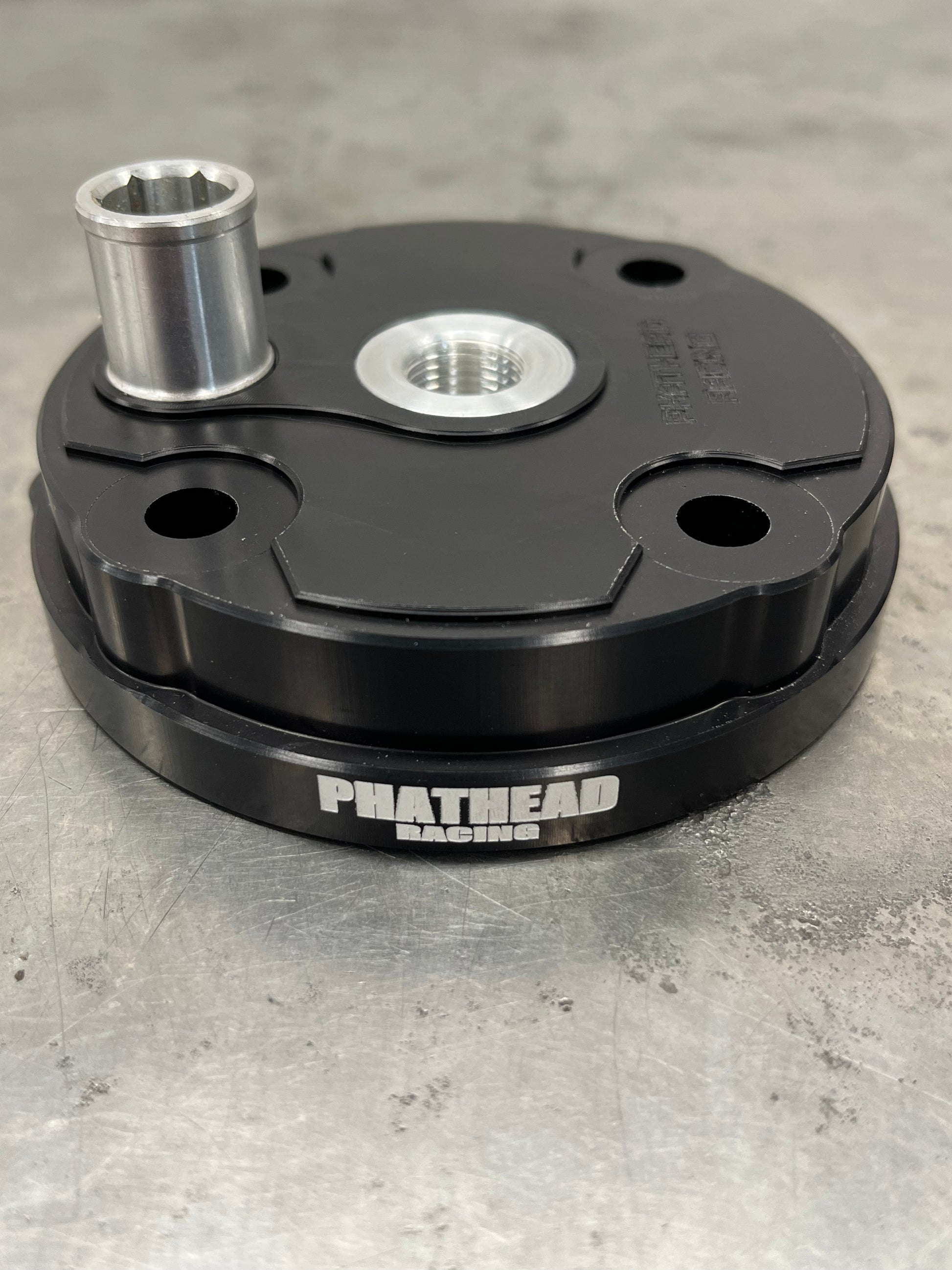 Phathead cylinder heads are made of 6061 T6 billet aluminum. The material is stronger and transfers heat better than cast aluminum. The two piece design allows an increase in coolant flow as well as surface area which improves cooling for better consistency and performance.